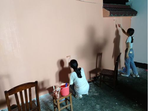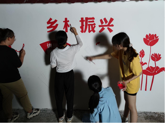 7月11日中午,经济与管理学院美丽乡村墙绘队抵达柳州市融安县潭头乡西岸村,在西岸村开展墙绘美化实践活动。带队老师翁文雯和5名同学参与了全部的工作。