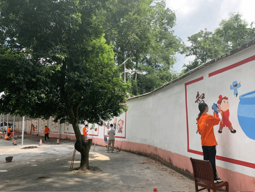 7月9日,艺术与文化传播学院组建乡村振兴墙绘实践队,赴柳州市流山镇大石村和流山中学开展为期5天的暑期“三下乡”社会实践活动。