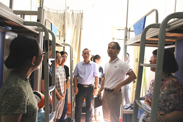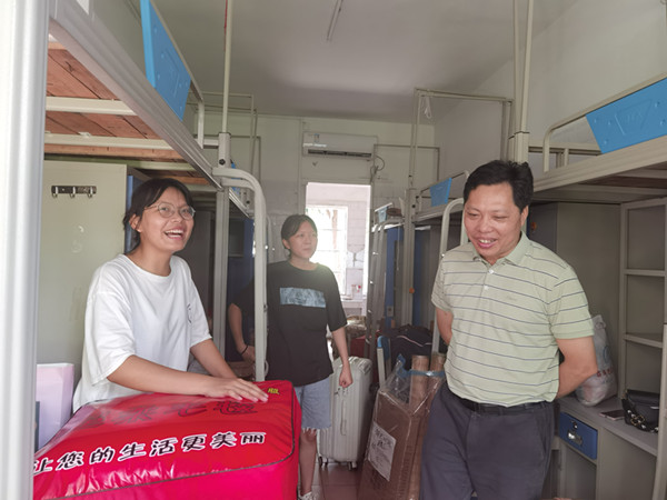 学生工作部(处)部(处)长陈克文,第一临床医学院(第一附属医院)党委书记庞晓红,第一临床医学院(第一附属医院)党委副书记、院长覃天等领导分别到搬迁现场看望学生。领导们走进学生宿舍与学生们亲切交谈,了解同学们对白沙校区各项设施设备的使用情况,关心慰问大家的生活起居并叮嘱注意暑期安全、往返家和学校途中注意个人疫情防控等。领导还勉励同学们要尽快适应新的环境,把握住白沙校区跟第一临床医学院近在咫尺的优势,多学习专业知识、精准掌握各项技能,将来做一位合格的救死扶伤的白衣战士。