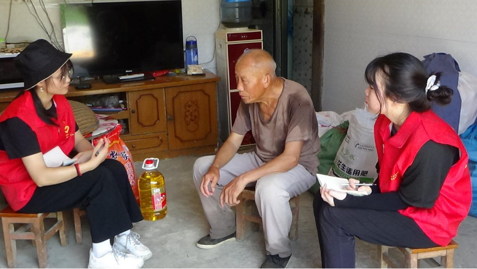 实践队全体成员为当口屯的廖世珍及廖光保两位“光荣在党50年”的老党员送上慰问品,并对他们进行访问。队员们了解到,廖世珍老人今年89岁,拥有68年党龄;廖光保老人今年75岁,拥有55年党龄。入党多年,于他们而言,“听党话,感党恩,跟党走”已经深深烙印在他们的脑海里、融化在他们的血液中。两位老党员分别为实践队全体成员讲述了自己加入中国共产党的初心和使命,为村民办好事、办实事的感人事迹等。