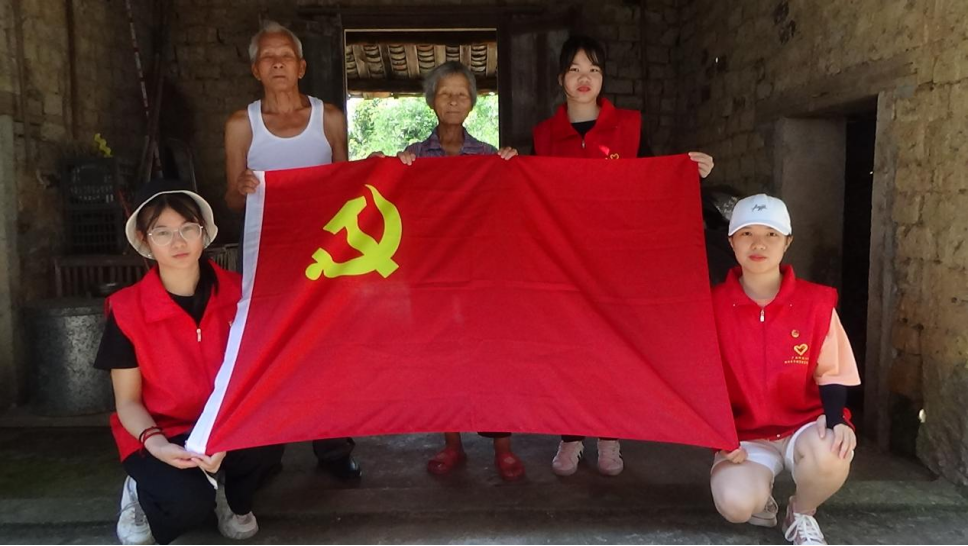 为庆祝中国共产党建党100周年,激励青年大学生坚定理想信念、牢记初心使命、传承革命精神,7月13日,经济与管理学院“赓续红色基因,汲取奋进力量”实践队,在柳州市融安县潭头乡西岸村驻村第一书记彭秋萍带领下,对西岸村“光荣在党50年”的老党员进行慰问与采访。