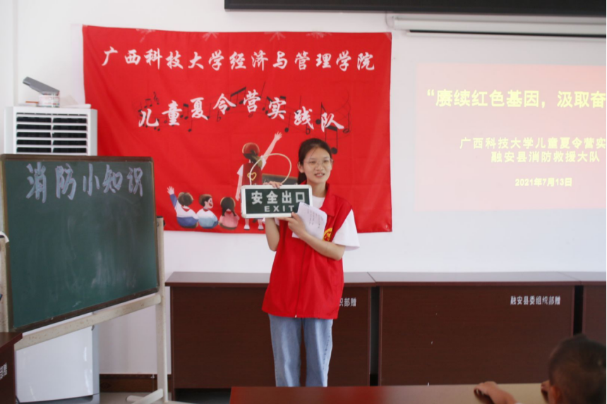 夏令营期间,实践队员携手融安县消防救援支队共同开展消防小知识宣传。形式多样的夏令营活动为西岸村儿童送上七彩假期,丰富了孩子们的暑期生活,培养他们的兴趣爱好,营造了健康向上的成长氛围。