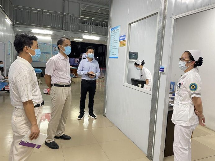 “上夜班很辛苦,尤其是女同志,大家要在坚守岗位的同时注意身体健康。”7月18日正是周末的最后一天,当天晚上,广西科技大学第一附属医院(第一临床医学院)党委书记庞晓红带领医院(学院)党委办公室、纪委监察室相关负责人,及当天总值班的行政部门中层干部组成临时慰问小组,来到夜班值守的一线岗位,了解医院夜班运行流程并叮嘱员工要劳逸结合,以工作为先、以家庭为重。