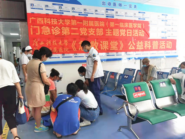 9月29日,门急诊第二党支部的党员同志们携手门诊医护人员在门诊候诊大厅展开一场生动、实效性强的急救知识培训,为前来就诊的市民朋友传授急救技能。现场群众学习热情非常高,认真听示范人员讲解后强烈要求亲手操作,讲解和示范员里有急诊科的专业急救团队成员,他们耐心指导群众实操,仔细讲解反复示范,直到群众都掌握要领。为推广急救知识,让更多市民朋友学习到急救技能,第一附属医院(第一临床医学院)在门诊候诊区将定期开展公益科普活动《急救课堂》。