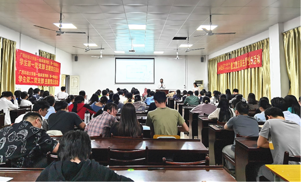 10月26日晚,广西科技大学第一临床医学院教工党支部联合学生第一、第二党支部在白沙教学点实验综合楼B-18教室举行“2021年英语四、六级考试经验分享会”主题党日活动。参加分享会的有教工党支部书记陈晓敏、教工党支部宣传委员陆莉静,2021年通过英语四级考试的学生代表倚涵洋、姚春兰、郭家怡,通过英语六级考试的学生代表刘雪琪、林丹燕及2018级、2019级、2020级学生120余人。