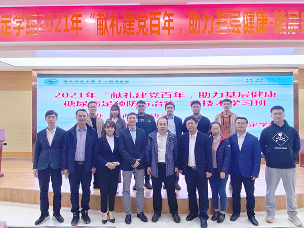 献礼建党百年,助力基层健康,为基层医院“送技术、送培训、送服务”,10月23日,由广西医师协会主办,广西医师协会骨科医师分会外固定学组承办,广西科技大学第一附属医院协办的“糖尿病足的治疗与预防”新技术学习班在广西科技大学第一附属医院学术报告厅隆重开班。本次学习班吸引了近200名基层医疗单位医护人员参加。医院党委副书记、院长覃天代表医院领导班子作开班致辞,骨科二病区赵顺吕主任主持本次学习班。
