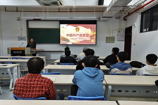 10月29日晚,电计学院党委委员、副院长潘盛辉以学习《中国共产党章程》为题,在柳东校区T4-205教室为所对接的学院仪器科学系学生党支部上专题党课,学院党委委员、团委书记、党支部书记刘阿娜以及支部所有党员同志到场聆听了党课。