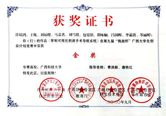 实验班成员获得第九届“挑战杯”广西大学生创业计划竞赛广西赛区金奖