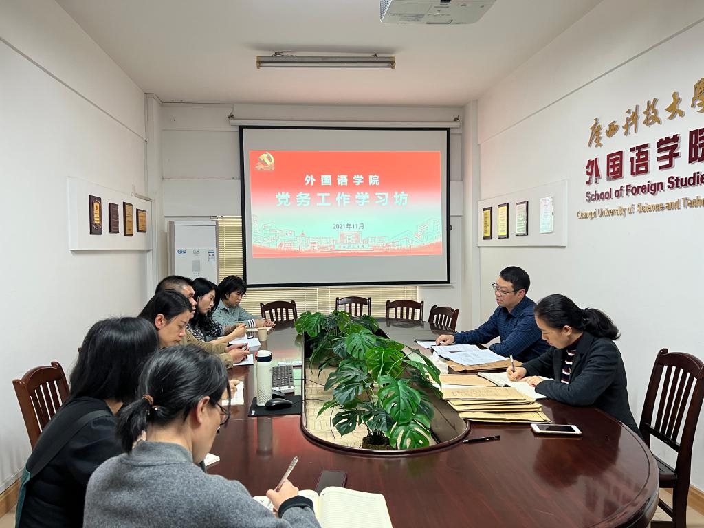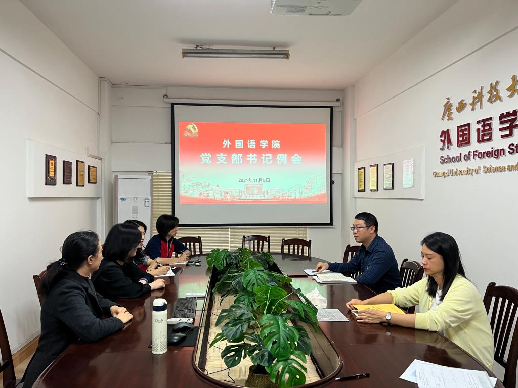 11月5日下午,外国语学院在东环校区学院会议室召开党支部书记例会暨党务工作学习坊活动,深入学习党员教育管理相关内容并对党员发展进行了专题培训。学院党总支书记陈志波主持例会和培训。