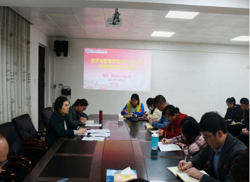 11月16日下午,经济与管理学院党委在第四教学楼4B409会议室召开11月党支部书记工作例会。本次会议由学院党委副书记韦齐齐主持,学院各党支部书记、全体支委参加了本次会议。
