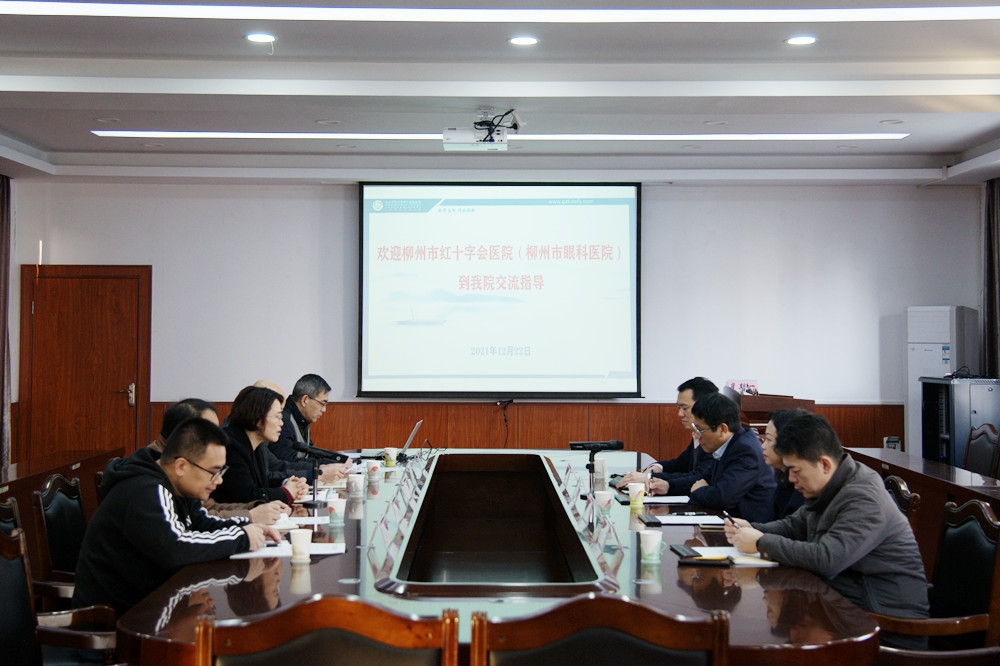 12月22日上午,柳州市红十字会医院(柳州市眼科医院)院长何建明一行4人到我校二附院交流调研,就眼科业务发展合作等问题进行座谈交流。二附院院长覃莲、副院长黄汉生、吴永晓及相关部门科室负责人陪同。