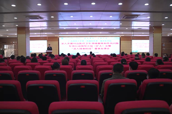 2月28日下午,广西科技大学第一附属医院在医院学术报告厅召开深入开展纠治医疗卫生领域腐败和作风问题专项行动领导小组(扩大)会暨“深入排查阶段”督查反馈会,会议强调驰而不息纠治医疗领域腐败和作风问题。院领导班子成员、各专项行动领导小组成员、全院中层干部和护士长100余人参加会议。一附院党委书记庞晓红作动员讲话、纪委书记潘旭主持会议。