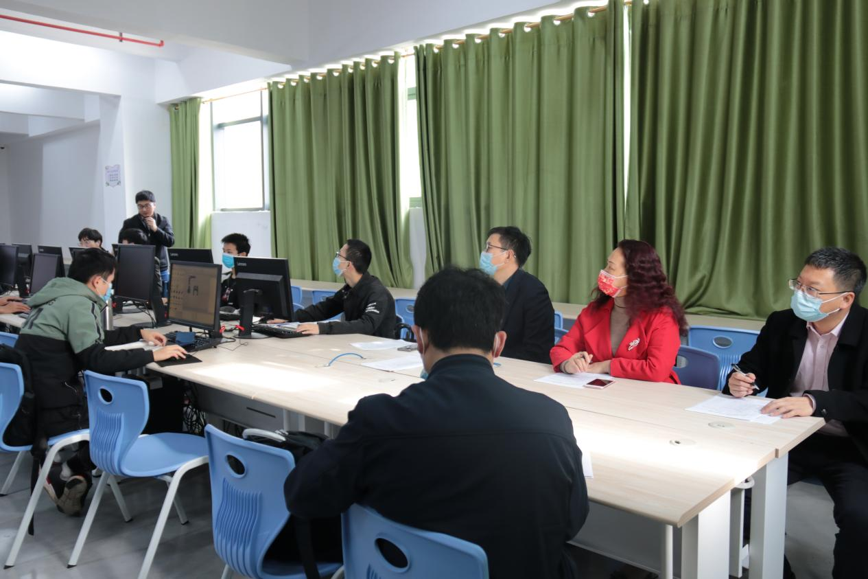根据学校安排,3月28日,柳东校区恢复线下教学。为切实落实学校疫情防控要求,做好疫情防控期间线上线下同步进行的教学工作,确保线上线下教学的有序无缝衔接,确保教学工作有序开展和教学过程质量可控,保障学生实质等效参加教学活动,机械汽车学院领导班子在线下教学第一天,开展了集体听课评课工作。学院党委书记卢丽虹、院长李健、副书记何敏、副院长张成涛和孙有平一行5人,以集体听课形式走进课堂,分别听取了《汽车液压与液力传动》《工业机器人仿真与离线编程》《机械制造技术基础》《工程数学》等课程的授课。
