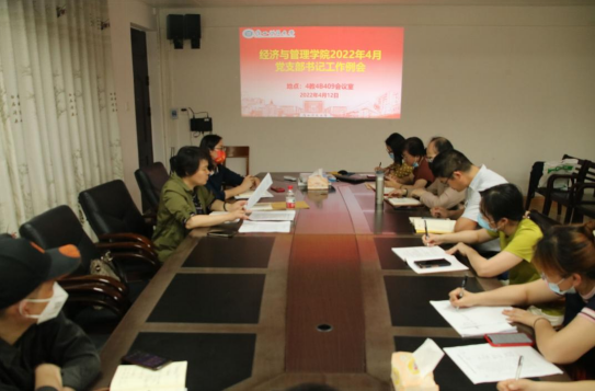 4月12日下午,经济与管理学院党委在东环校区四教4B409会议室召开2022年4月党支部书记工作例会。本次会议由学院党委书记廖奕主持,学院党委副书记、纪委书记韦齐齐以及各党支部书记参加了本次会议。