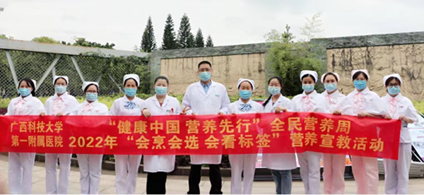 5月12日,广西科技大学第一附属医院举行全民营养周暨“5·20”中国学生营养日主题宣传活动启动仪式。医院领导班子、全院中层领导干部、护士长参加仪式。医务部部长张云波主持仪式。