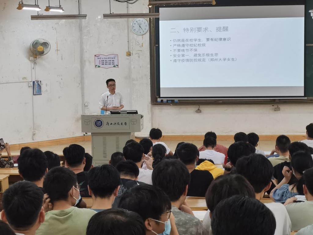 5月25日下午,工程技术学院在东环校区4阶1教室召开2022届毕业生教育大会,进一步落实做好毕业生思想政治教育、安全教育和就业工作。学院党委副书记、纪委书记何兴旭,学院团委书记吴骏,就业专兼职干部、毕业班班主任和全体毕业生参加会议。
