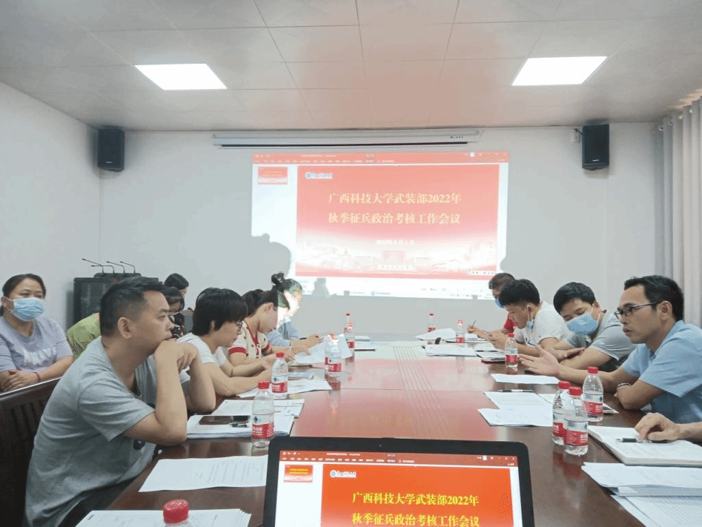 为切实做好征兵政治考核工作,从源头上把好新兵政治质量关,6月1日,武装部召开学校2022年秋季征兵政治考核工作会议。学校党委武装部副部长黄大志、城中区武装部军事科科长黄龙、政工科干事蓝格的、潭中派出所副所长刘道武、军事科全体工作人员以及各二级学院(部)负责征兵辅导员参加会议,会议由军事科科长王群辉主持。
