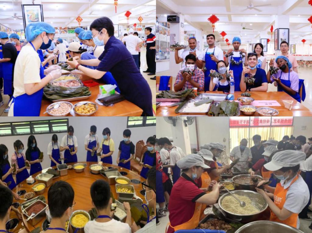 6月3日是端午节,这天,学校东环校区、柳石校区、柳东校区、箭盘教学点、白沙教学点“粽香四溢”,欢声笑语,充满了浓郁的节日氛围。围绕“我们的节日·安康端午”主题,后勤管理处精心策划和组织了“浓情端午,粽香校园”免费送粽子活动和“拾传统手艺,传经典文化——广西科技大学中外学子端午节主题体验活动”。