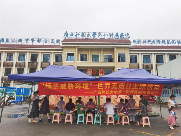 烟草危害是当今世界最严重的公共卫生问题之一,吸烟严重危害人类健康,可以导致肺癌、慢性呼吸系统疾病、冠心病、脑卒中等多种疾病和死亡。5月31日是第35个“世界无烟日”,今年的活动主题是——烟草威胁环境。当天早上,广西科技大学第一附属医院呼吸内科在门诊楼前举行2022年世界无烟日主题宣传活动。