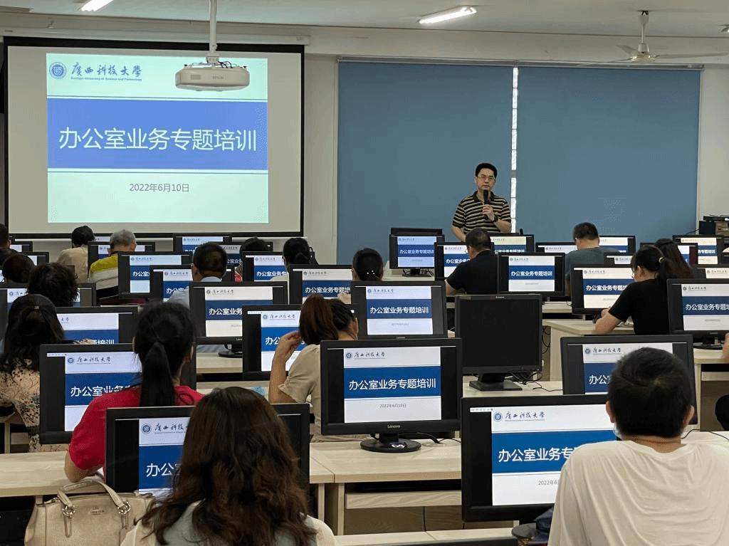 为进一步夯实办公室人员业务能力,提升办公室工作水平和工作效能,根据《广西科技大学2022年度办公室人员业务培训工作方案》安排,6月10日下午,我校办公室业务专题培训会在东环校区基础实验楼302机房举行。学校党委办公室、校长办公室主任卢志平参加并作讲话,全校各单位(含直属、附属单位)办公室主任及办公室业务相关人员参加培训。