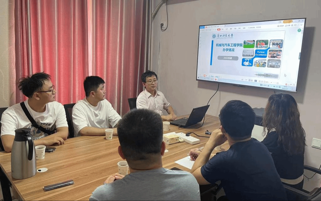 孙有平首先向博士们介绍了学院在学科建设、科学研究、教育教学、师资队伍等方面的基本情况,重点介绍了近年来围绕柳州市汽车、工程机械优势产业的学科布局情况,以及通过校企合作在重大科技项目、标志性科研成果、重大科教创新平台方面取得的成绩,诚挚邀请各位博士加入广西科技大学机械与汽车工程学院。