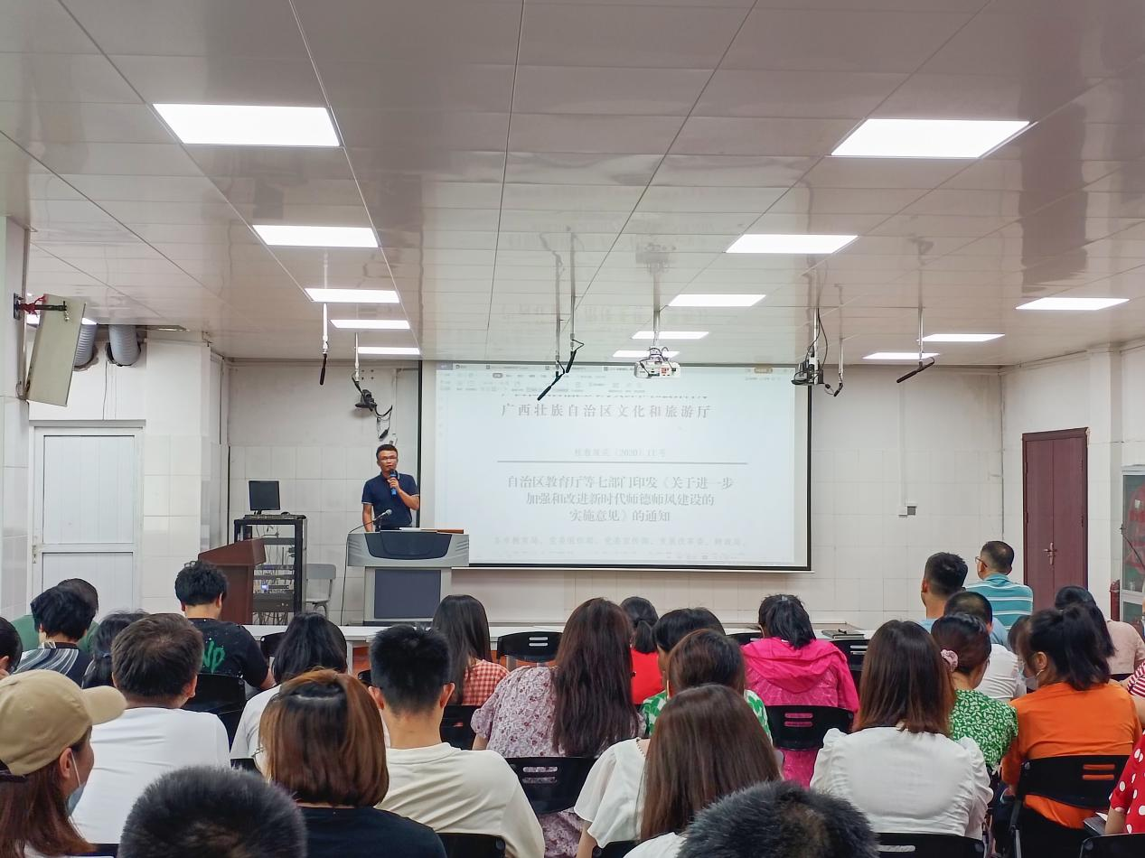 会上,副校长周永有、黄富献分别领学了《关于进一步加强和改进新时代师德师风建设的实施意见》《师德师风考核实施细则》和《广西科技大学附属卫生学校听课制度》。通过深入学习制度和榜样事例学习,进一步提高全体教职工的思想政治素养和职业道德水平。
