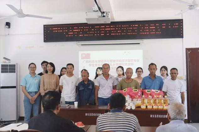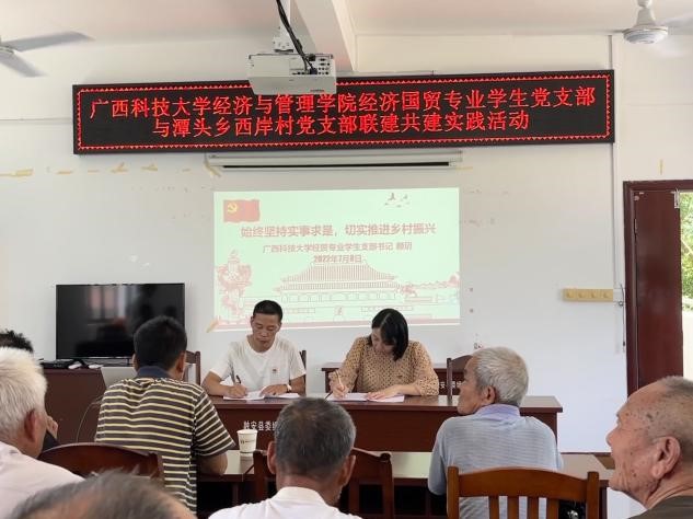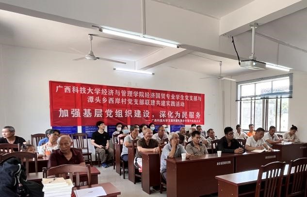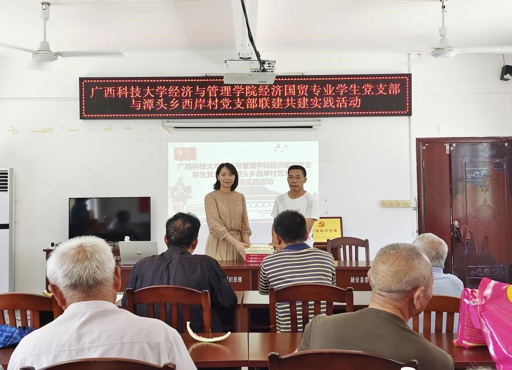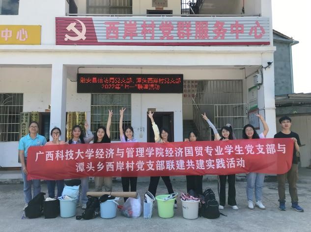 为深入学习贯彻习近平新时代中国特色社会主义思想,开展基层党建“五基三化”攻坚年行动,广西科技大学经济与管理学院经济国贸专业学生党支部与融安县潭头乡西岸村党支部开展党支部共建活动。