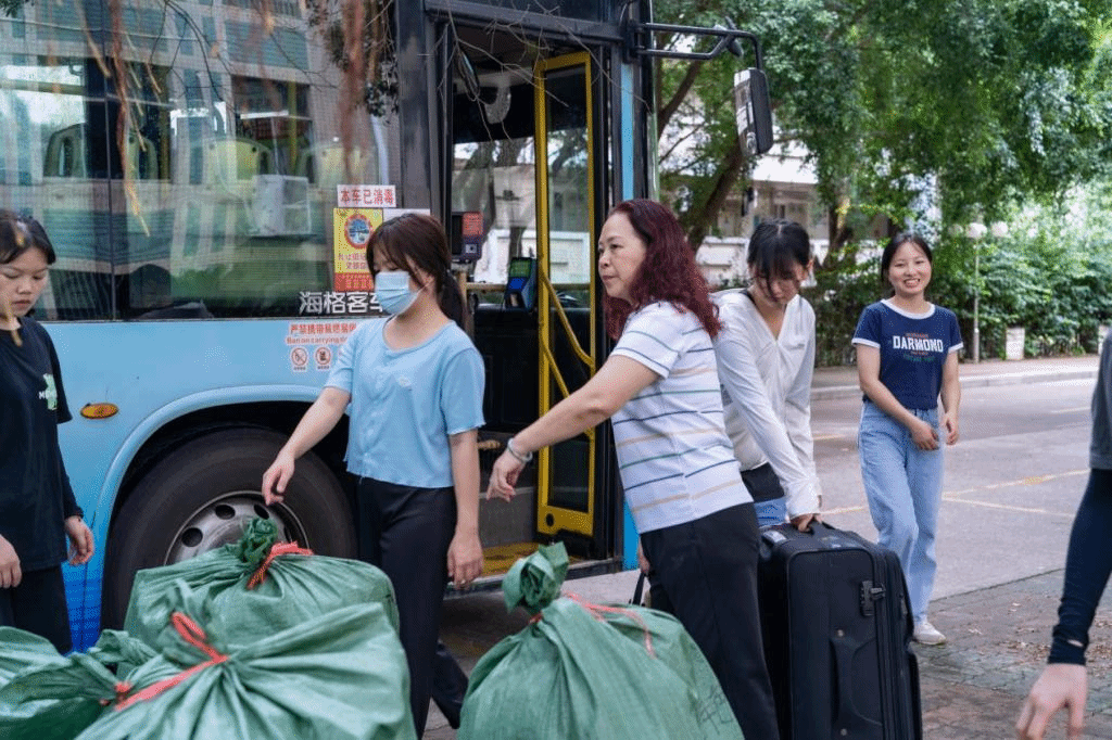 搬迁当日,学院领导和老师在现场协调指挥,志愿者们协助搬迁的同学们做好行李的登记、装卸、搬运等工作。经过紧张有序的装车,2400多件行李顺利从文昌校区搬迁至柳东校区。同学们也有序乘车,安全抵达柳东校区。