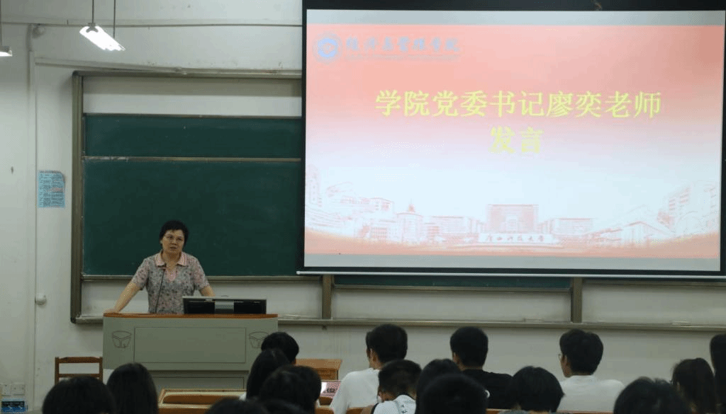 9月29日晚,经济与管理学院在文昌校区6北101教室举行校运会集训动员会。学院党委书记廖奕、体育团负责老师黄俊杰以及2022级辅导员王萌参加活动。