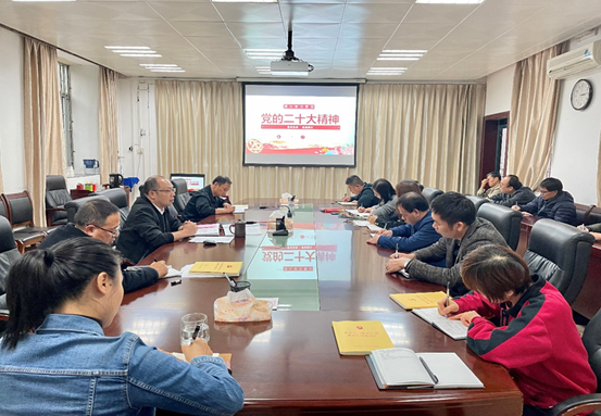 11月15日下午,继续教育学院在学院1-209会议室召开教职工政治理论学习会,认真学习宣传贯彻党的二十大精神。会议由学院党总支书记彭勇主持,学院全体教职工参加会议。