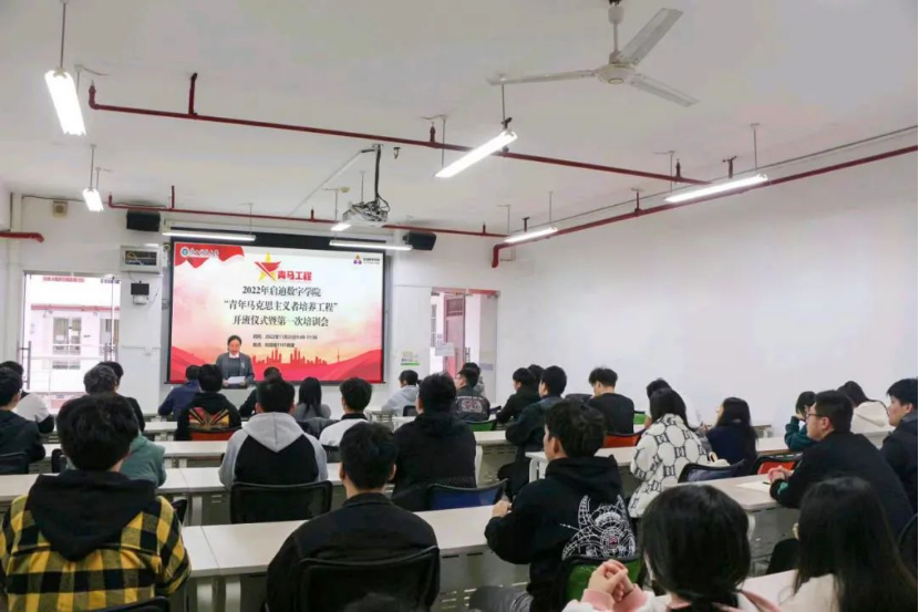 为组织广大青年学生深入学习宣传贯彻党的二十大精神,进一步强化启迪数字学院学生骨干培养工作的科学性、专业性、系统性,切实发挥大学生骨干培养工作在“青年马克思主义者培养工程”中的示范和带动作用,11月20日上午,启迪数字学院2022年“青年马克思主义者培养工程”大学生骨干培训班正式开班。学院党委书记秦培仁,副院长王萌,党委副书记吴却,学院各党、团、学组织主要负责人和2021、2022级主要学生干部参加了青马培训班开班仪式。仪式由吴却主持。