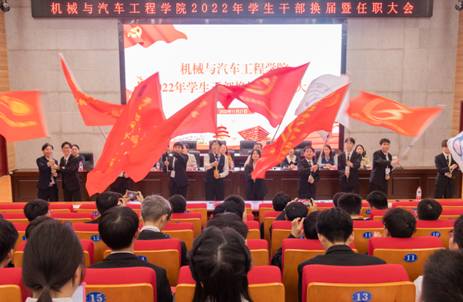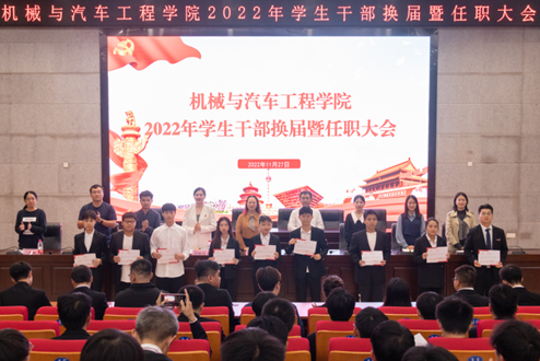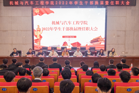 11月27日,机械与汽车工程学院2022-2023学年学生干部换届暨任职大会在柳东校区T1-303多功能报告厅举行。学院党委书记卢丽虹,副院长孙有平,团委书记、学工办主任关敏丹,全体辅导员以及学生党务中心、团委、学生会等各类学生团体300余名新老干部参加会议,大会由关敏丹主持。