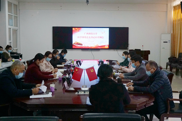 12月15日,医学部党总支书记12月例会在柳石校区3202会议室召开,医学部党委常务副书记廖奕,党委副书记、纪委书记蒋智华,党委副书记蓝娟,部属各党总支书记、专职组织员、机关党支部书记、党政办副主任参加会议,会议由蒋智华主持。