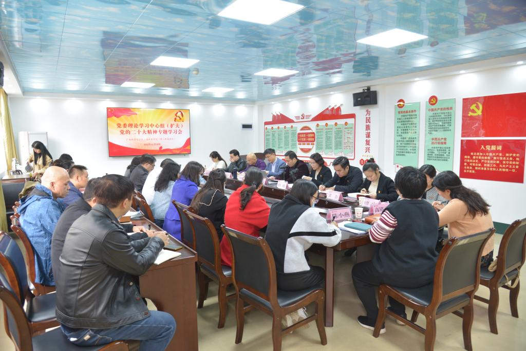 会上,院党委副书记胡耀文、纪委书记黄江黎、工会常务副主席高铭云,还分别围绕《中国共产党章程(修正案)》《十九届中央纪律检查委员会向中国共产党第二十次全国代表大会的工作报告》《中共广西壮族自治区委员会关于深入学习宣传贯彻党的二十大精神 奋力开创新时代壮美广西建设新局面的决定》学习进行了中心发言;党委委员、院长助理蒋世海,党委委员廖宁分别以党的二十大精神学习体会作交流发言。