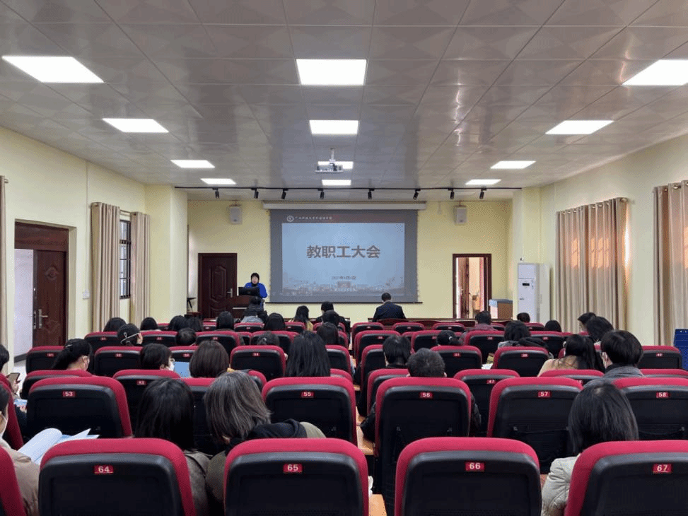 2023年1月6日下午,外国语学院在文昌校区基础实验楼106教室召开教职工大会,总结2022年工作亮点与成绩,研究部署2023年新学期重点工作。学院领导班子成员、全体教职工参加会议,会议由院长周柳琴主持。