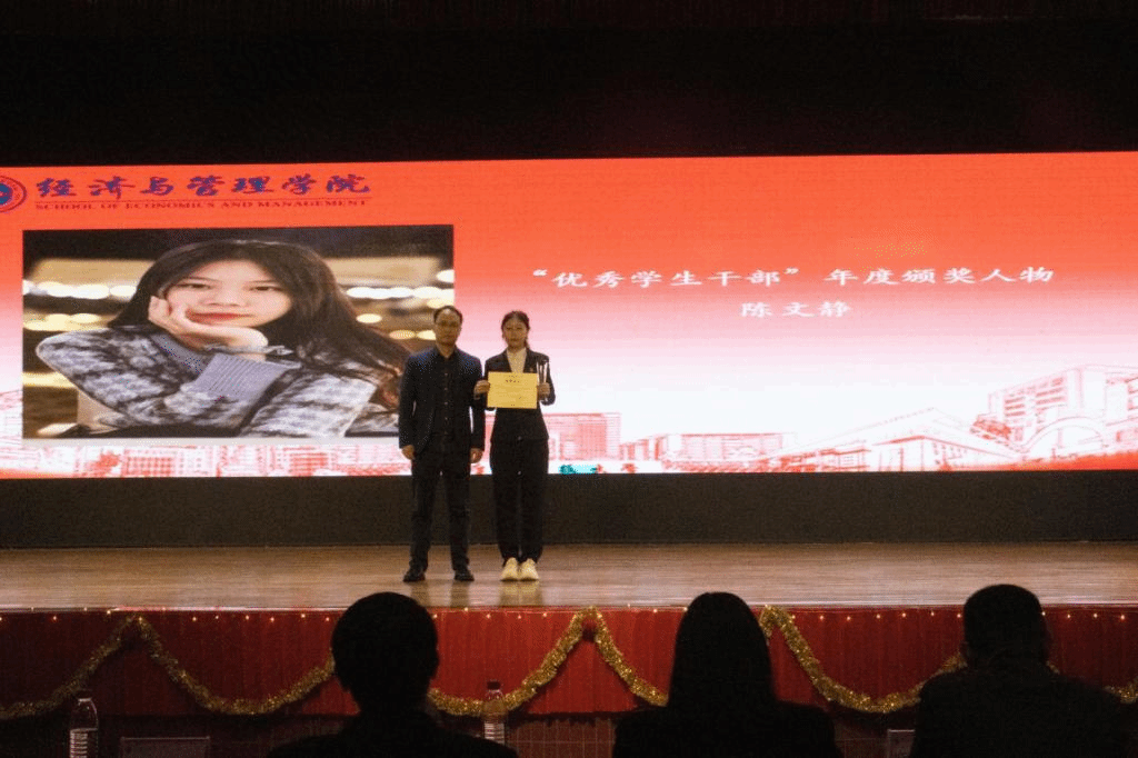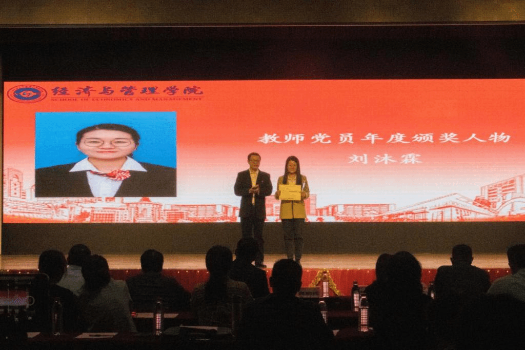 诗歌朗诵《诗颂风华》之后,韦齐齐宣读了《关于表彰经济与管理学院2022年度党员榜样人物的决定》。2022年,学院共评选出7位教师党员榜样人物和12位学生党员榜样人物。教师党员榜样人物包括袁中华、刘沐霖、李丽清、刘秀娜、张伟、黄伟新、管仕平;生党员榜样人物包括:“学习之星”柴岩(资产评估专业2021级研究生)、赵如萍(会计本科专业2021级2班)、罗婷元(国际经济与贸易本科专业2019级1班),“自强不息之星”黎炫栋(工业本科专业2019级1班)、关玉宁(国际经济与贸易本科专业2019级2班),“优秀学生干部”陈文静(国际经济与贸易本科专业2020级2班)、玉晓晶(管理科学与工程专业2021级研究生),“文艺之星”庞业茗(经济学本科专业2020级2班),“科技创新之星”徐宁(管理科学与工程专业2021级研究生)、黄文华(经济学本科专业2020级1班),“志愿服务之星”朱苑榕(金融本科专业2019级2班)、刘姿显(国际经济与贸易本科专业2020级2班)。