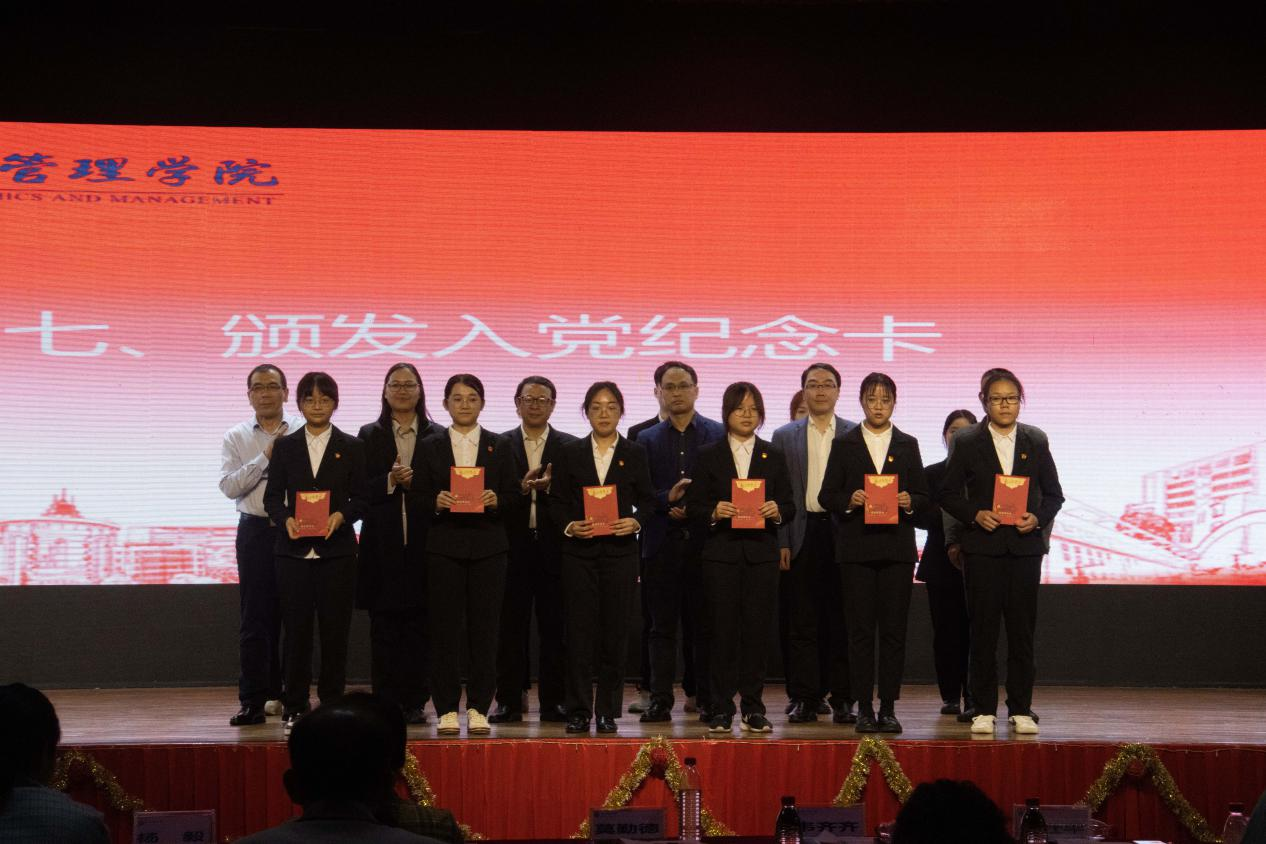 典礼播放了每位榜样人物的视频介绍、推荐词、颁奖词,学院领导为他们一一颁奖。教师党员代表黄伟新、学生党员代表徐宁分别作为党员代表发言。学院领导与党委委员为新发展的党员同志颁发了入党纪念卡,全体党员重温了入党誓词。期间还穿插了党的二十大精神、全国两会精神等知识竞答环节,使在场党员进一步深入学习党的二十大精神,进一步夯实了政治理论学习的成果。