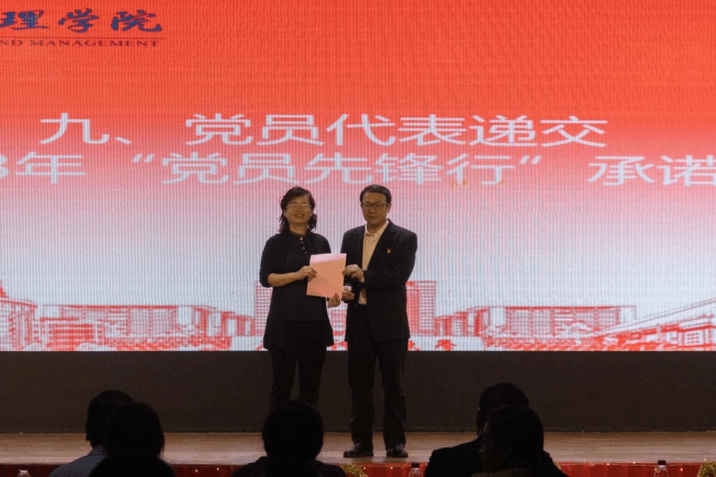 随后,2023年“党员先锋行”主题活动启动仪式拉开帷幕。工商管理系教工党支部管仕平、学硕研究生党支部玉晓晶分别作为教师党员代表、学生党员代表,宣读了学院2023年“党员先锋行”承诺书。随后,每个支部选派1名党员代表向学院党委书记莫勤德递交“党员先锋行”承诺书,围绕坚定理想信念、履行党员义务、遵守党纪党规、发挥先锋作用等方面许下庄严承诺。