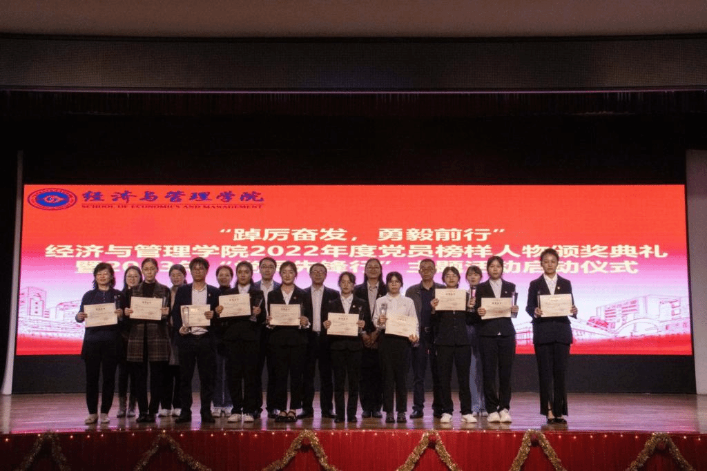 3月21日晚,经济与管理学院“踔厉奋发,勇毅前行”2022年度党员榜样人物颁奖典礼暨2023年“党员先锋行”主题活动启动仪式在文昌校区大学生活动中心隆重举行。学院党委书记莫勤德,院长关勇军,党委副书记、纪委书记韦齐齐,副院长杨毅,学院党委委员以及各党支部书记出席本次颁奖典礼。