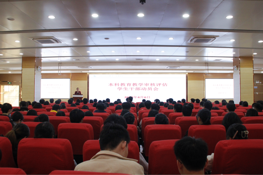 为做好迎接本科教育教学审核评估专家入校评估工作,4月6日18时,广西科技大学第一临床医学院在学术报告厅举行本科教育教学审核评估专家入校评估工作学生干部动员会。学院党委副书记何曲波出席动员会并作动员讲话,学工办主任、团委书记唐艳红主持会议。学院各班级、学生会及团委200多名学生干部参加了动员会。