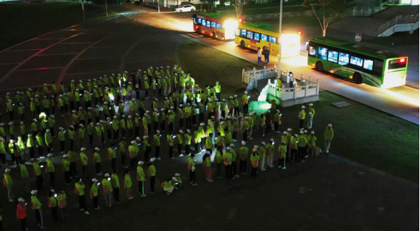 志愿者凌晨4:30在学校宗元前广场整装待发
