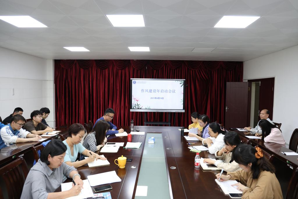 4月14日下午,附属卫校召开作风建设年启动会,校领导、中层干部、行政人员和教研组组长参加会议,会议由党总支副书记韦锦绣主持。