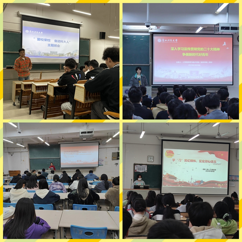 各学院(部)结合“爱校荣校”教育组织学生在校园内开展植树、除杂草、绿植养护等活动,让学生用自己的双手美化绿化校园;组织班级开展认养“班级树”活动,由学生们的亲手种植,共同精心呵护成长,让学生以实际行动做增绿护绿行动的实践者。以“宗元大讲堂”、“青思享”主题沙龙为平台,组织开展劳动榜样人物进校园活动,提升劳动教育的吸引力和感染力。邀请了全国“时代楷模”、大连海事大学曲建武教授作专题讲座;邀请中国共产党第二十次全国代表大会代表、广西汽车集团有限公司首席技能专家、国家级技能大师工作室负责人、2022年“大国工匠年度人物”、广西科技大学优秀校友郑志明高级工程师为学生做分享。