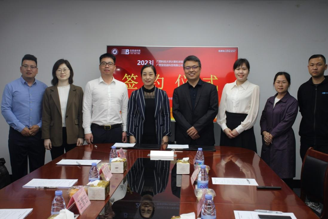 为扎实开展访企拓岗促就业行动,拓宽毕业生就业渠道,全力促进毕业生顺利就业,计算机学院和广西宝信迪科技有限公司达成校企合作,并于4月27日上午在宝信迪公司举行校企合作签约仪式。学院党委书记刘莉莉,党委副书记、纪委书记黄剑华,辅导员王紫云,广西宝信迪科技有限公司董事长兼总经理张余安,副总经理林小萍及相关人员出席本次签约仪式。