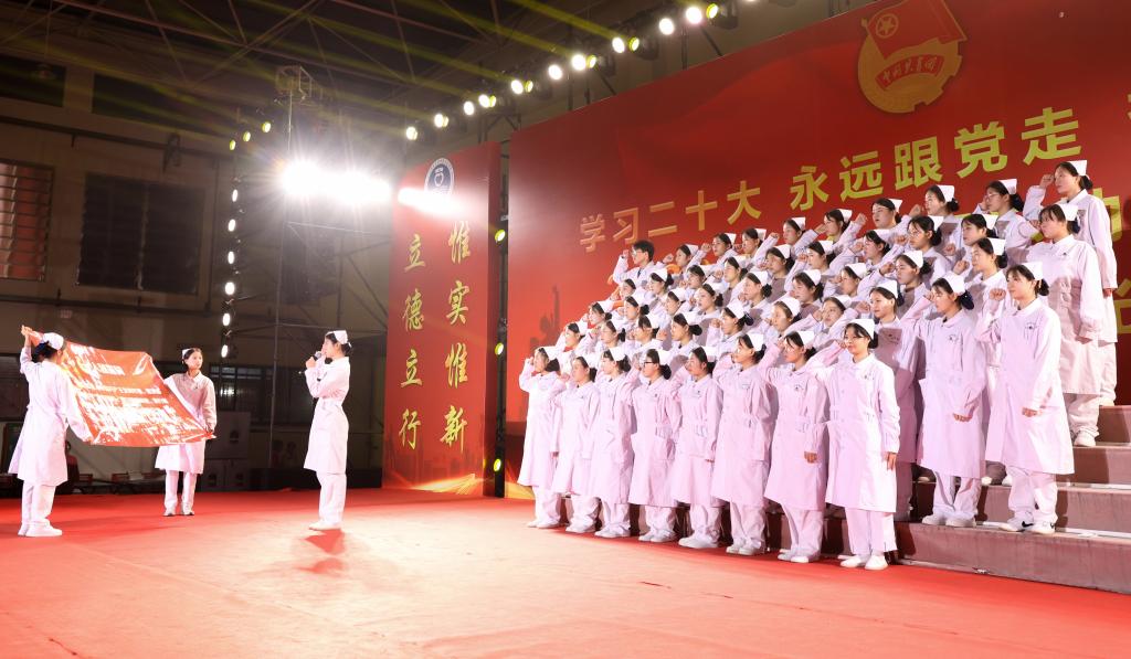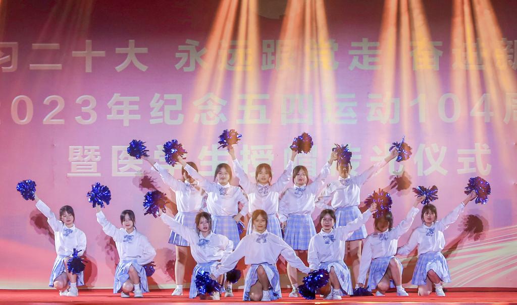 青春孕育无限希望,青年创造美好明天。为深入学习贯彻习近平新时代中国特色社会主义思想和党的二十大精神,教育引导广大团员青年听党话、跟党走,做有理想、敢担当、能吃苦、肯奋斗的新时代好青年。5月11日晚,附属卫校在柳石校区室内体育馆举行纪念五四运动104周年暨医学生授帽传光仪式。
