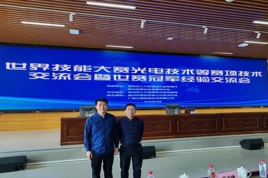 自动化学院副院长潘盛辉、院长助理樊香所博士及实验中心教师杨叙、吴国强参加本次交流会。世界技能大赛专家周渝曦教授就光电技术、信息网络布线、电气装置赛项等技术要领作专题报告,第46届世界技能大赛光电技术赛项世界冠军李小松就成长为世界冠军的训练和参赛经验进行分享,与会者受益颇多。