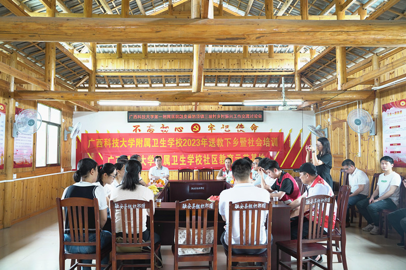 5月18日,广西科技大学第一附属医院联合广西科技大学附属卫生学校,到融安县泗顶镇开展以“党建引领、助力乡村振兴”为主题的党建活动。广西科技大学第一附属医院党委书记庞晓红带领党员医疗专家团队,附属卫校党总支书记邓燕率队参加活动。