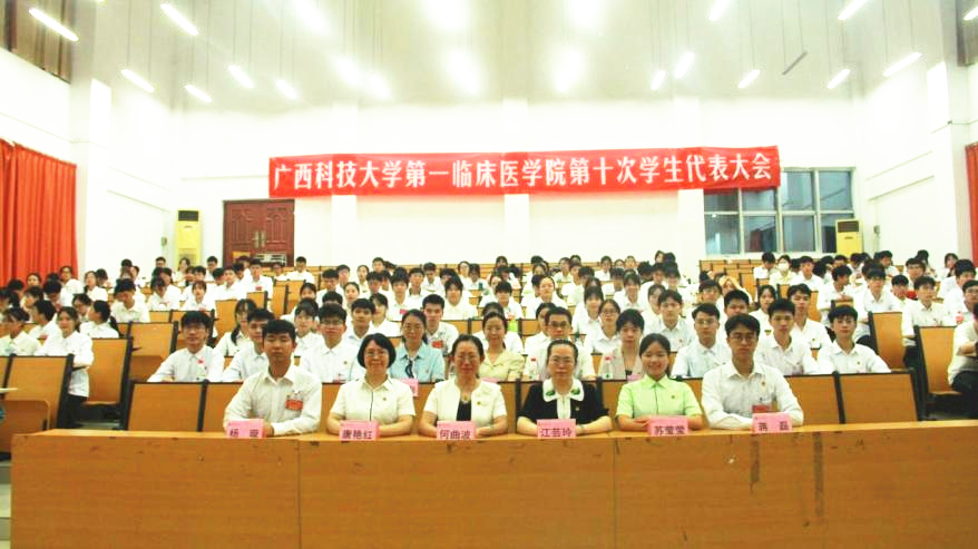 5月19日,广西科技大学第一临床医学院第十次学生代表大会在柳石校区1110报告厅举行。第一临床医学院党委副书记何曲波,医学部学工办副主任、团委副书记江芸玲,第一临床医学院学工办主任、团委书记唐艳红以及各辅导员出席本次大会,第一临床医学院学生会执行主席杨璇,医学部学生会代表苏莹莹以及学院学生代表约200人到场参与。
