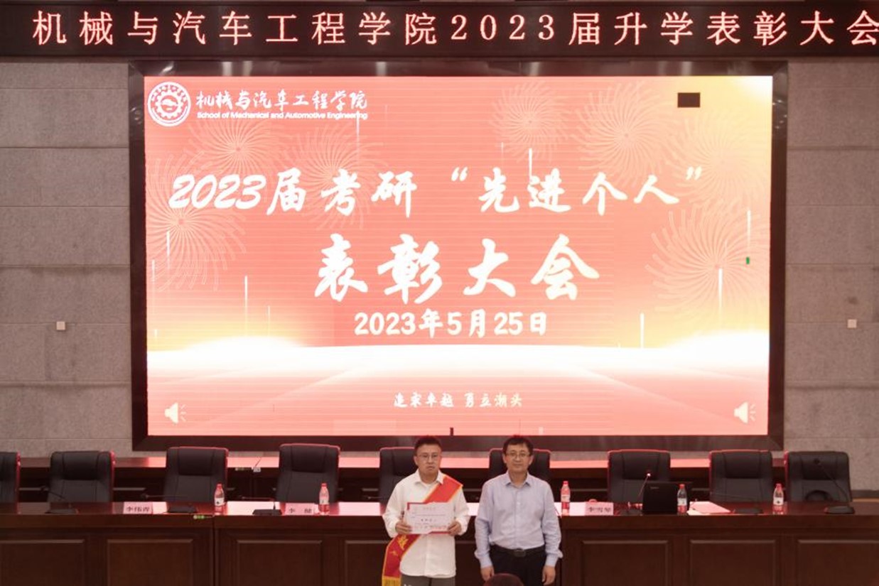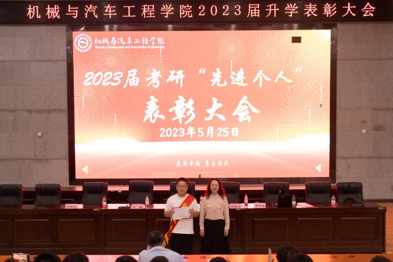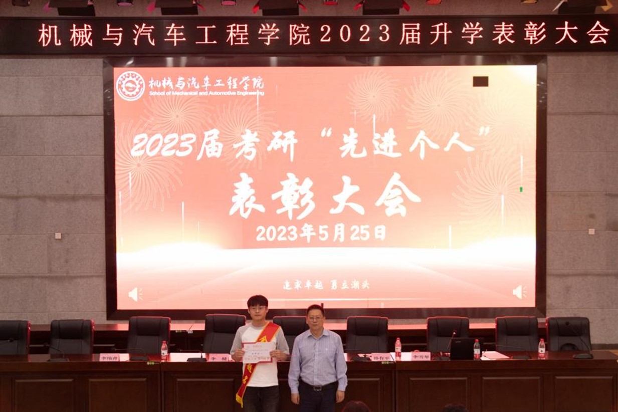 截止5月25日,2023年机械汽车学院共有9名硕士毕业生考取博士研究生、81名本科毕业生考取硕士研究生,较2022年考取人数翻了近一倍。大会上,孙有平宣读了“先进个人”名单,希望他们能继续保持积极进取的精神,尽快融入新的学习环境,在未来的岁月里取得更加辉煌的业绩。