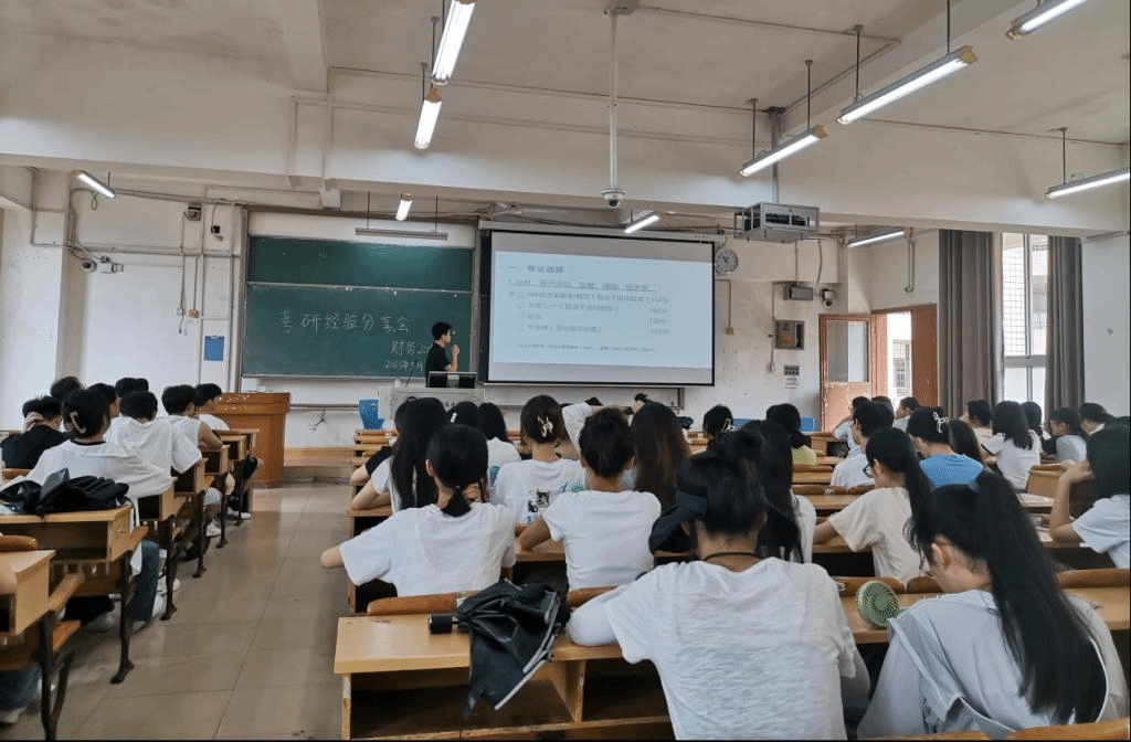 交流会邀请了今年以优异成绩考取湘潭大学、上海理工大学、浙江工商大学等高校的10多位毕业生代表担任主讲人。会上,已经考研上岸的毕业生结合自身考研经历,围绕院校信息的获取渠道、备考期间的时间分配以及如何缓解备考焦虑等同学们普遍关注的热点问题进行了全面细致的解答分享,并与同学们进行了热烈的交流互动。他们强调,考研是对知识和身体的双重考验,在平常的复习中要注意以积极的心态、健康的体魄和科学的方法去努力拼搏。最后,学长学姐鼓励正在备考的同学们:道阻且长,行则将至,只要每天坚持一点,每天加油一次,彼岸终将到达。